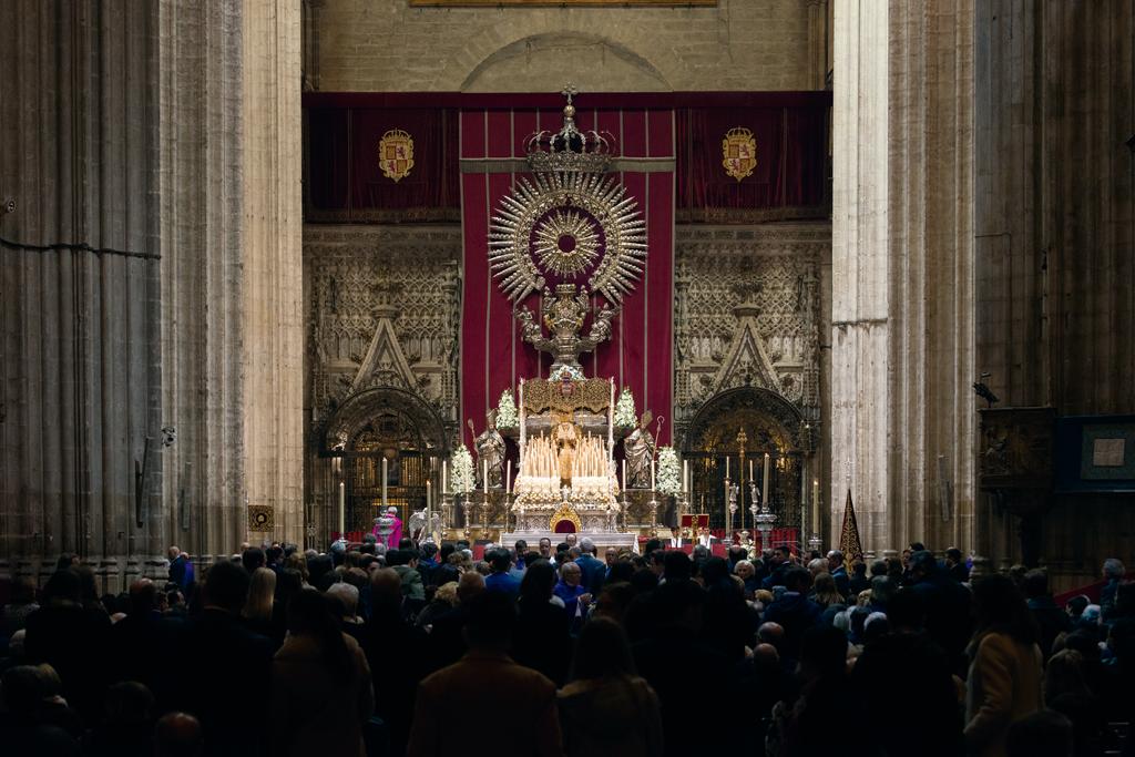 El día de la Coronación, la ciudad se volcó con la Virgen. La imagen, recorrió en procesión las calles de su feligresía hasta llegar a la Santa Iglesia Catedral, donde fue coronada solemnemente por el arzobispo. Acompañada por una multitud de fieles, cofradías y autoridades eclesiásticas, Nuestra Señora de la Encarnación fue revestida con la corona de oro donada por los hermanos y devotos, símbolo visible del amor de su pueblo y del reconocimiento de su realeza espiritual.