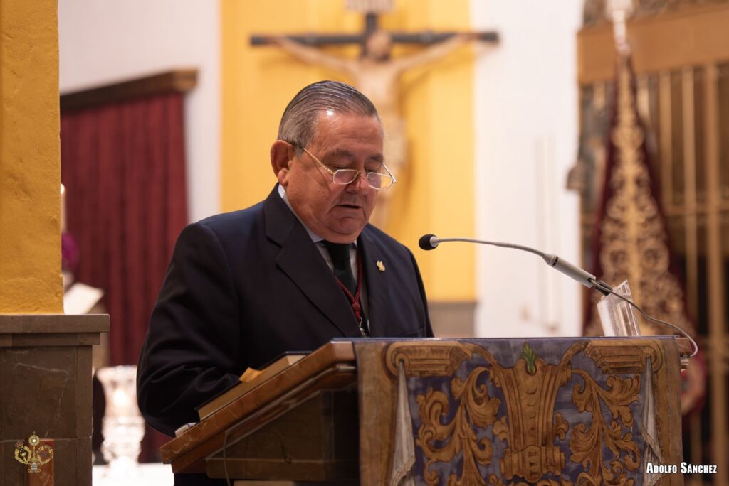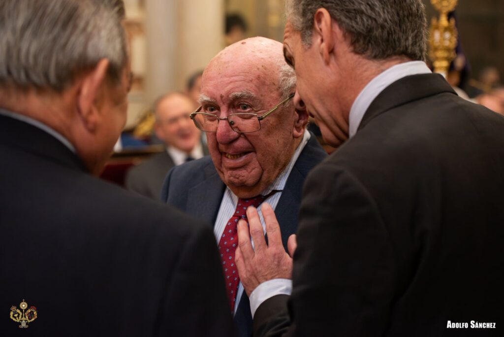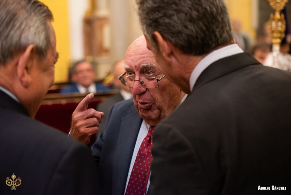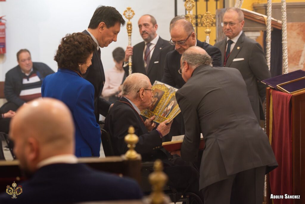 Antes del inicio de la celebración, la Hermandad hizo entrega de la medalla corporativa en plata de ley, con cordón de seda granate y oro y fijador dorado, debidamente enmarcada, a nuestro hermano D. Juan Lamela Jurado, en reconocimiento a sus 75 años de pertenencia ininterrumpida a la corporación, según acuerdo capitular.