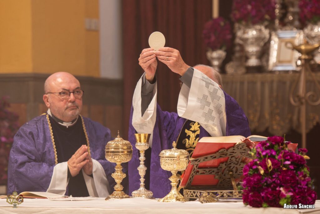 La Eucaristía estuvo presidida por el Rvdo. Sr. D. José Antonio Maya Díez, párroco de San Benito Abad y director espiritual de la Hermandad. Concelebró nuestro hermano el Rvdo. Sr. D. Pedro Juan de Dios Álvarez Barrera, rector de la Colegial del Divino Salvador.