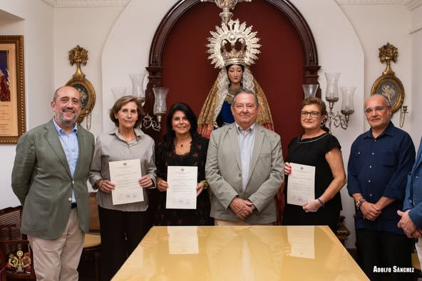 En la jornada de ayer, nuestra Hermandad vivió un día de especial significado con la entrega oficial de credenciales a quienes desempeñarán funciones esenciales durante la próxima estación de penitencia y el presente curso respectivamente. El acto, que tuvo lugar tras la Santa Misa de Inicio de Curso en la Sala de Juntas de la Casa Hermandad, estuvo marcado por la emoción, el compromiso y la gratitud.