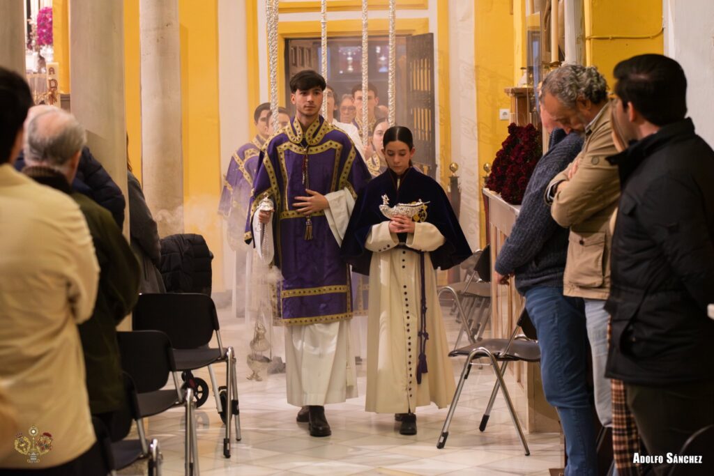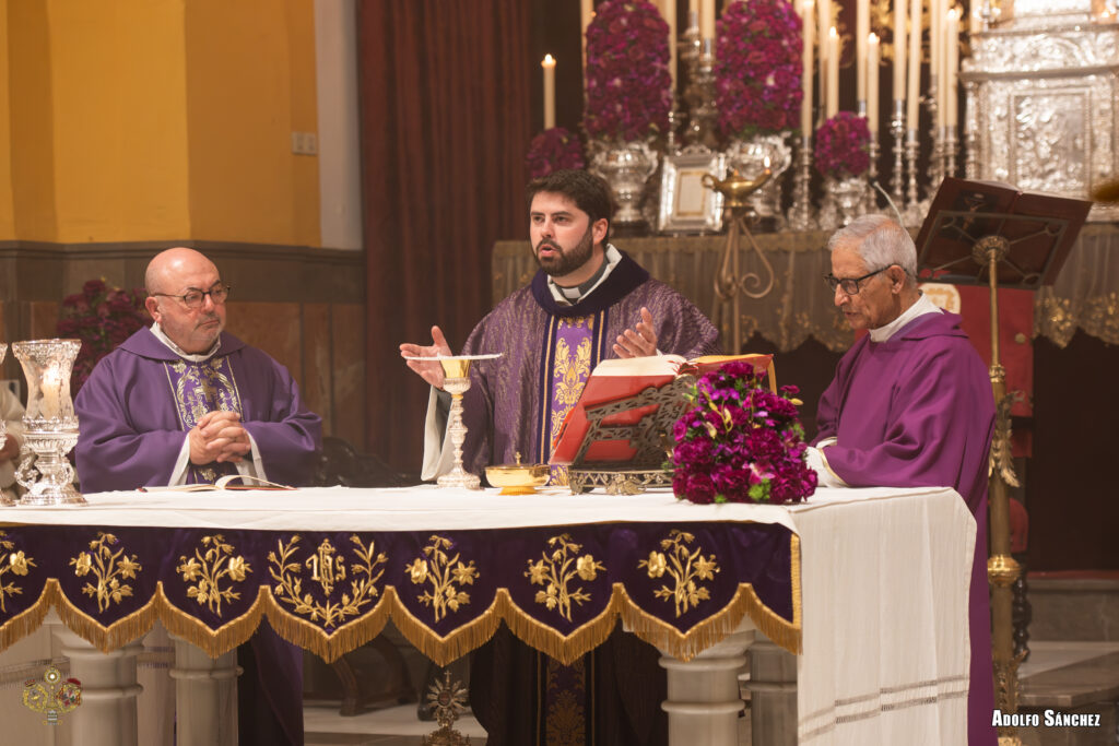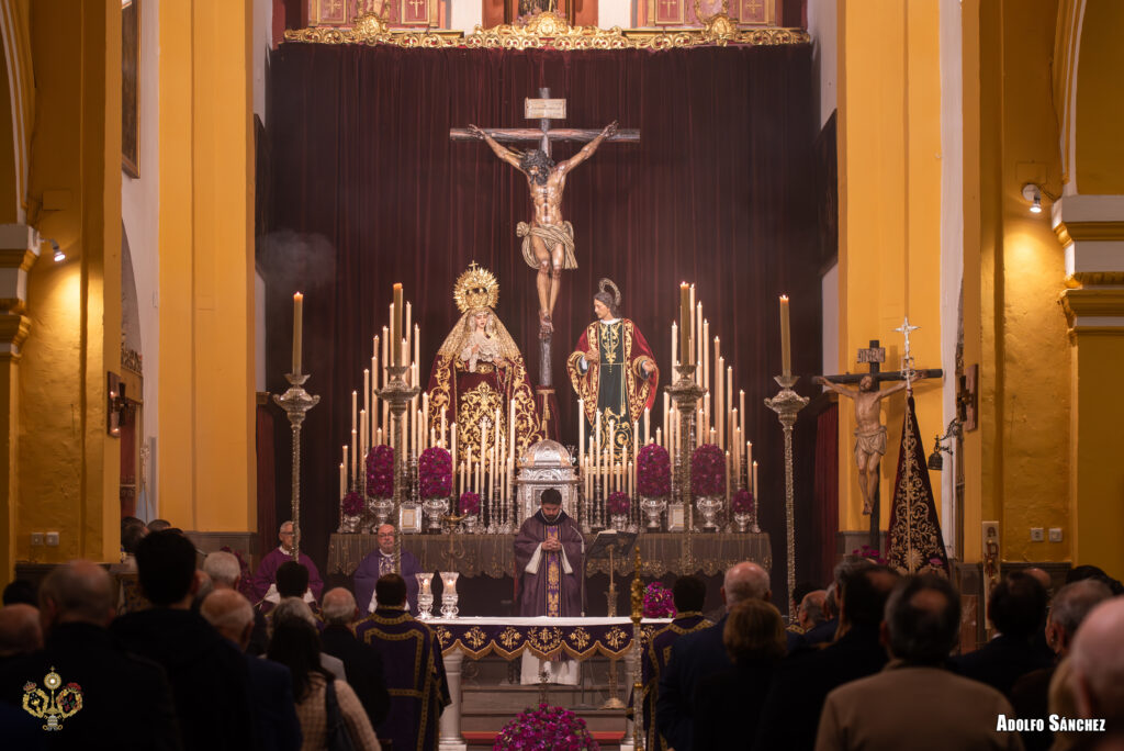 Las celebraciones litúrgicas fueron presididas por el Rvdo. Sr. Carlos Antonio Galán Moreu, párroco del Santísimo Redentor de Sevilla, a quien la Hermandad agradece su entrega y profundidad en la predicación. La Capilla Musical Ars Sacra acompañó cada jornada.