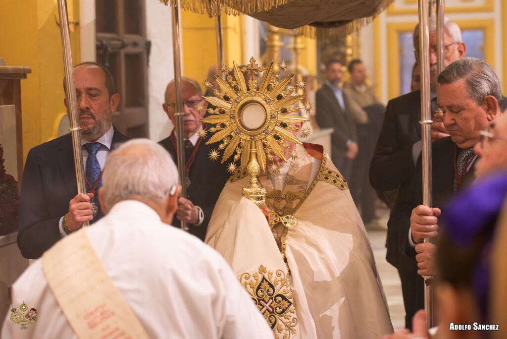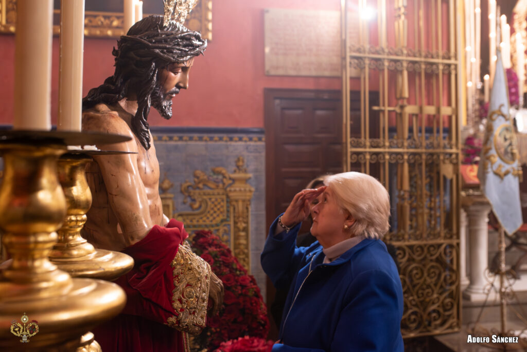 Paralelamente, el Señor de la Sagrada Presentación de Jesús al Pueblo permaneció expuesto en devoto besamanos tras cada Eucaristía, con un exorno floral de rosas, hypericum y clavel barbatus.