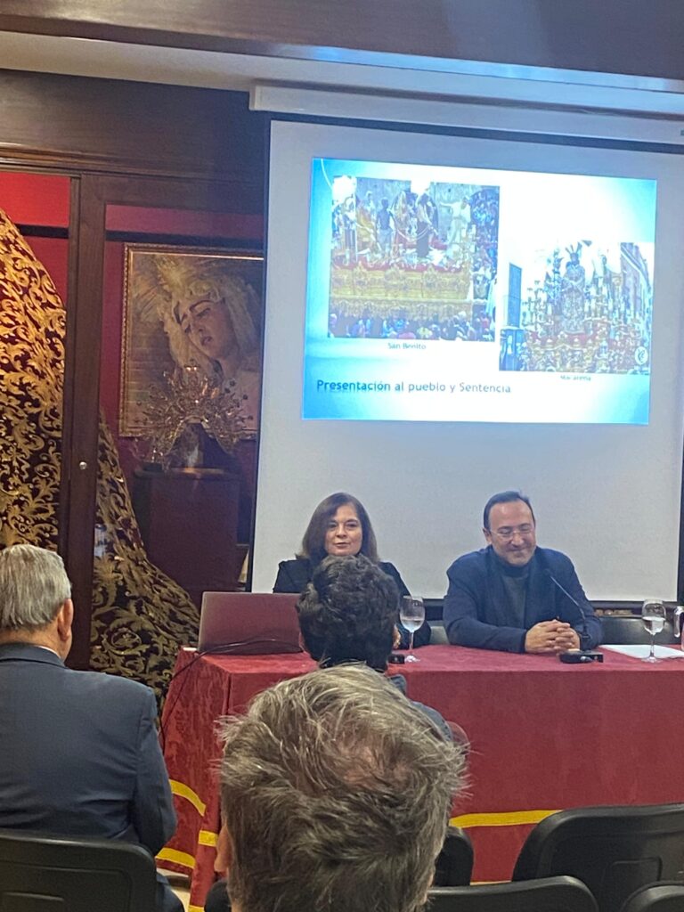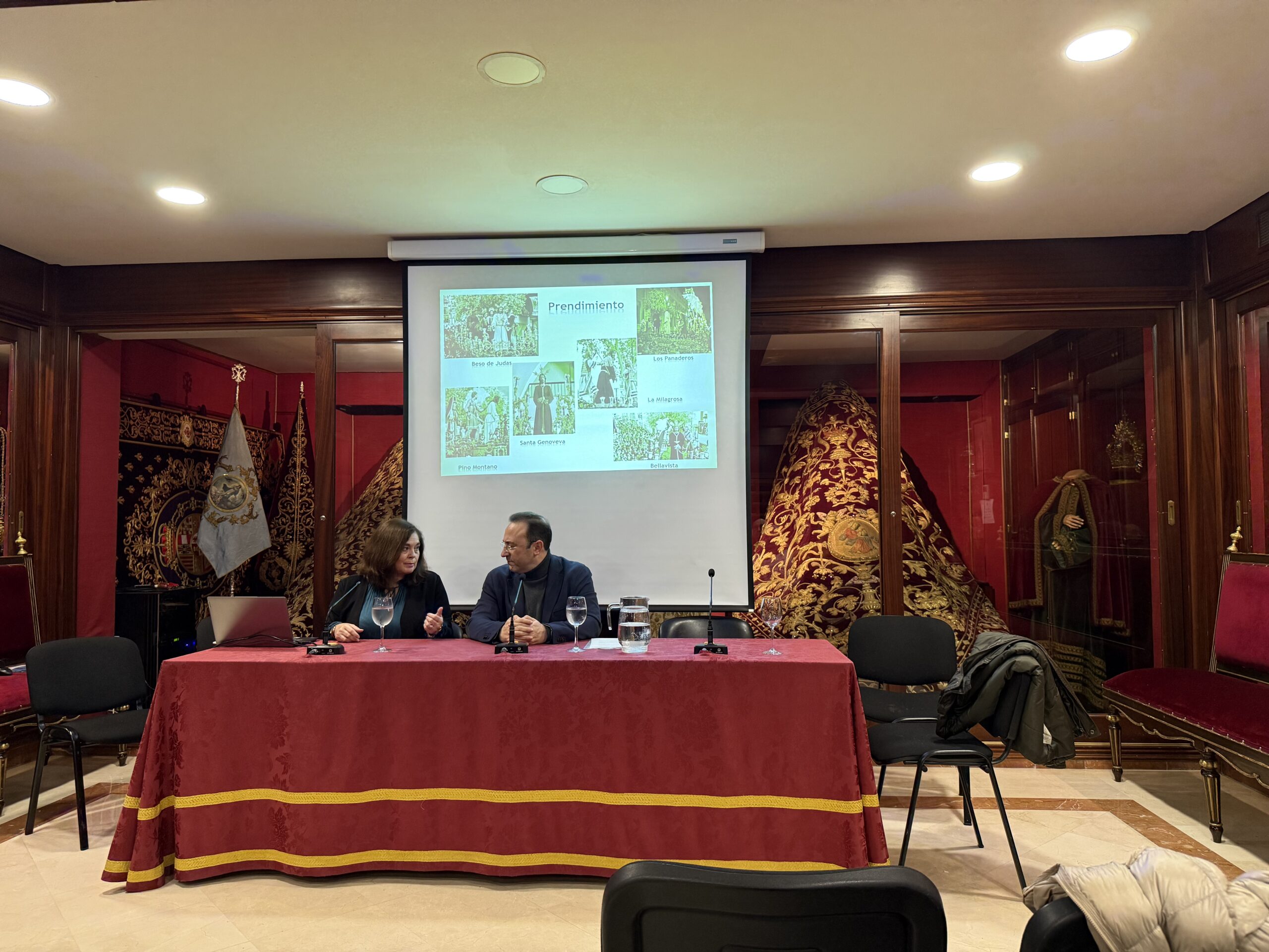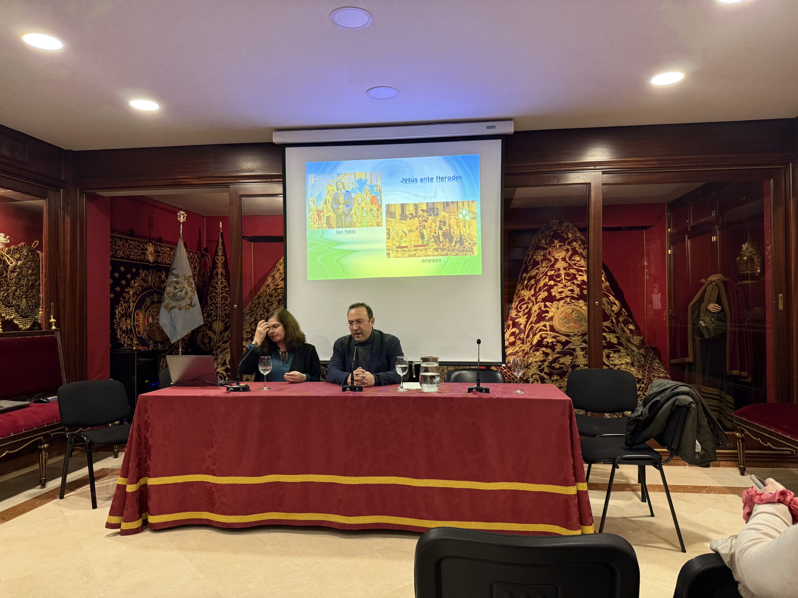 En la tarde de ayer tuvimos la oportunidad de asistir a la conferencia La Pasión a través de los pasos de misterio, impartida conjuntamente por Don Antonio Puente Mayor y Doña Aurora López Güeto. Con una magnífica intervención nos permitió profundizar en el verdadero significado de nuestra Semana Santa, contemplando la Pasión desde la mirada que ofrecen los pasos de misterio.