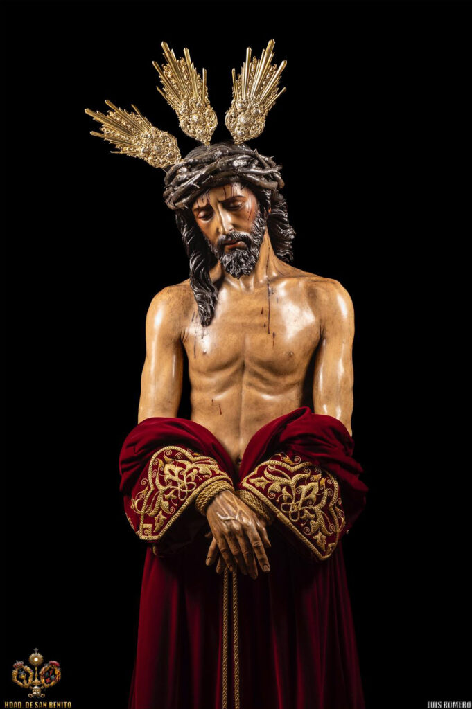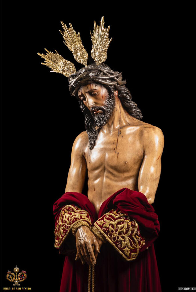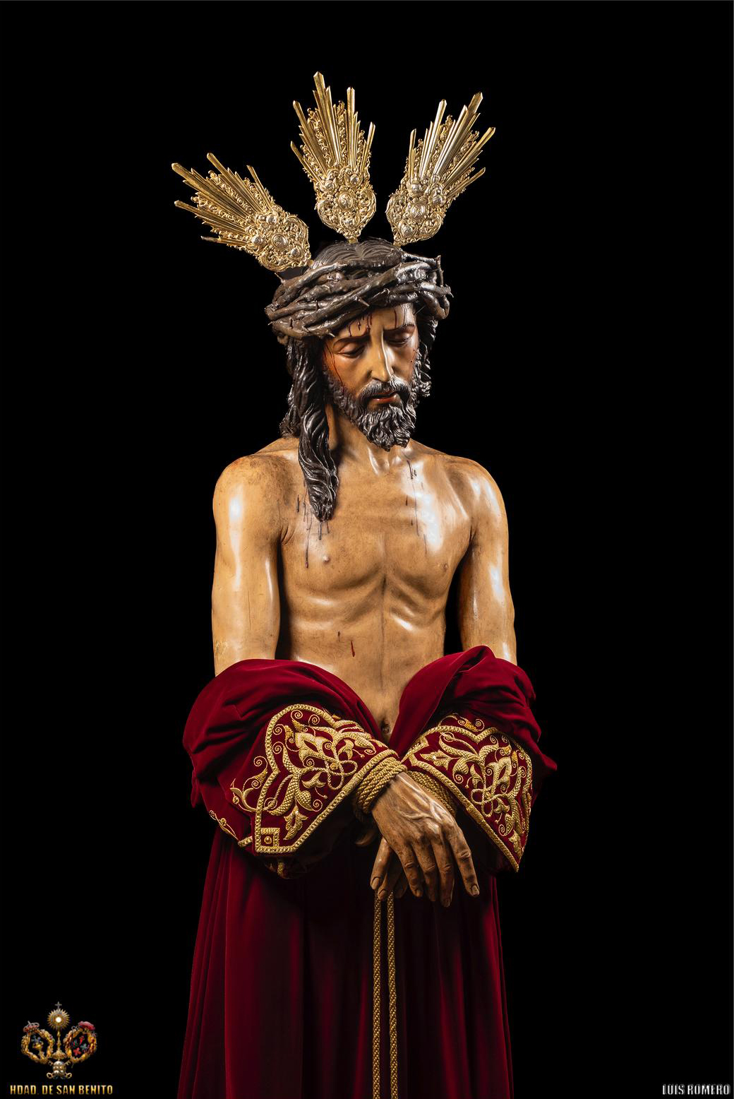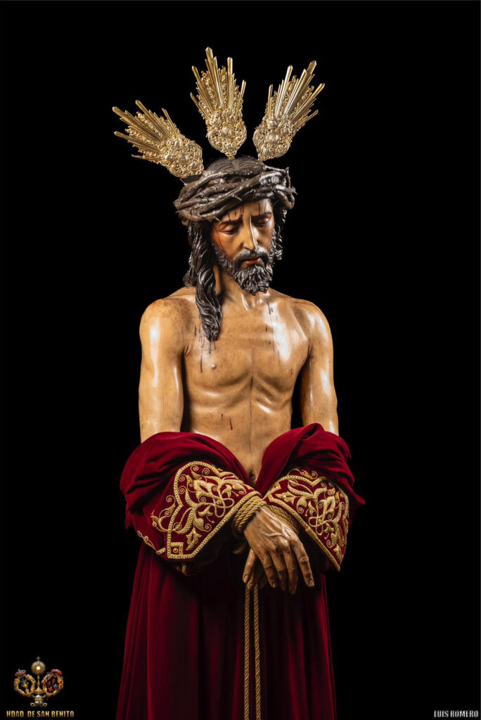 El Señor de la Sagrada de la Presentación ya se encuentra dispuesto para el inicio del nuevo curso en La Calzá. Luce la elegante túnica de inspiración mudéjar bordada por Mariano Martín Santoja en el año 2016 y las potencias de plata sobredorada que en 1948 labrara Manuel Villarreal, que realzan su presencia serena y majestuosa.