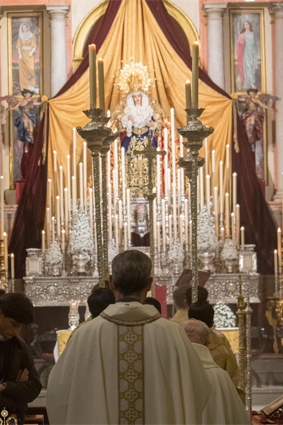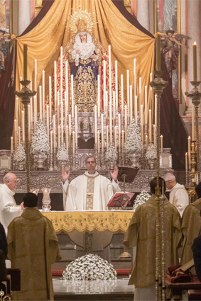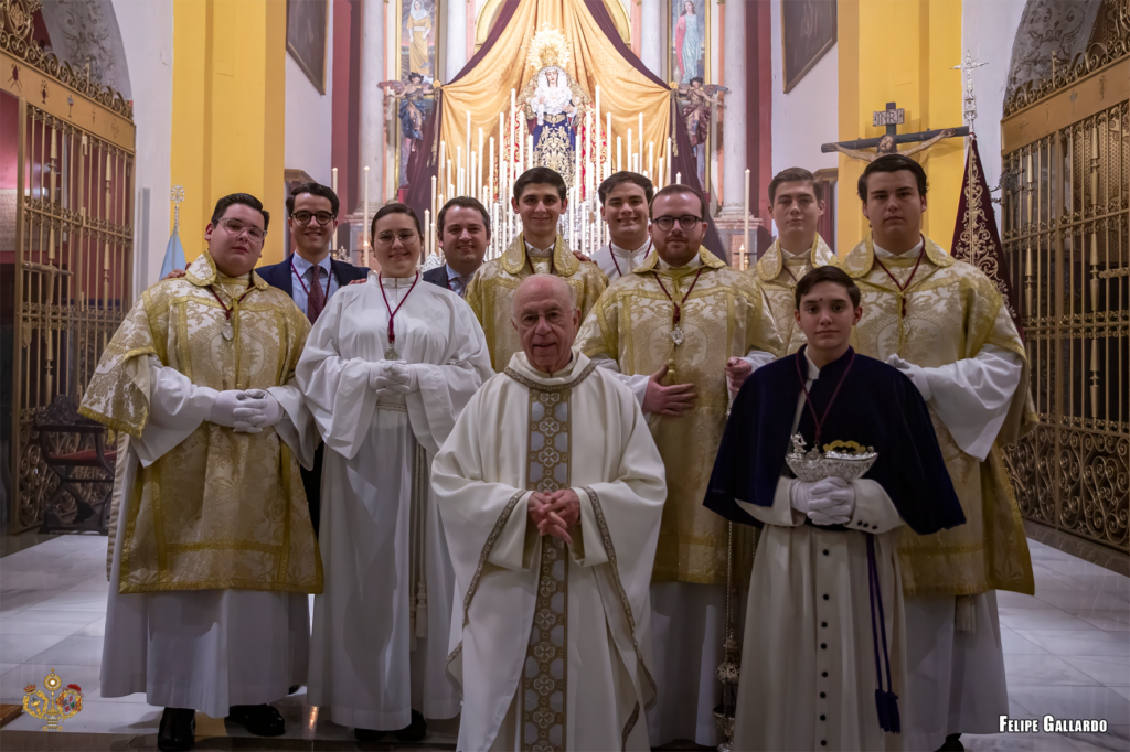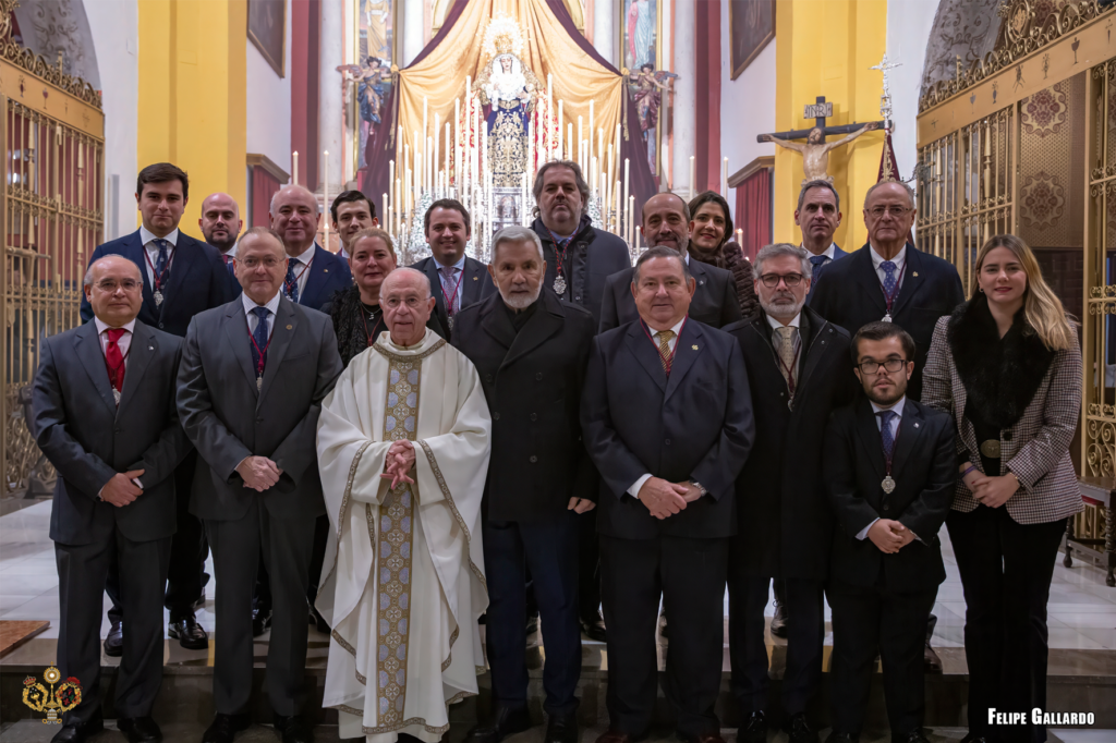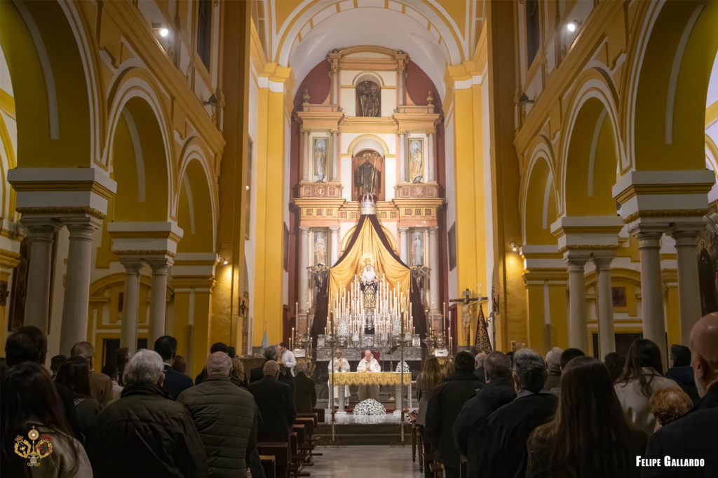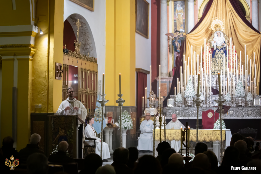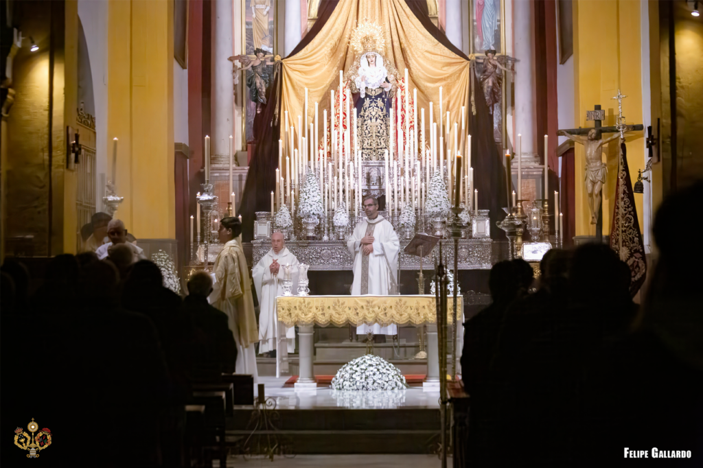 La hermandad celebró con especial devoción el triduo en honor a la Santísima Virgen los días 20, 21 y 22, predicado por el Rvdo. Sr. D. Alfonso Peña Blanco, párroco de San Francisco Javier y San Ignacio de Loyola de Sevilla, culminando con la función solemne el día 23, presidida por nuestro Director Espiritual. Para estas jornadas, la imagen de la Virgen se presentó ataviada con el manto de camarín confeccionado en 2024 en el taller de bordados Virgen del Carmen, obra del bordador José Muñoz Moreno, de San Fernando (Cádiz). Lució igualmente su saya de salida, diseñada por Antonio Joaquín Dubé de Luque y realizada en 1990 en los talleres Artesanía Fernández y Enríquez, así como la corona labrada por Manuel Villarreal Fernández en 1957. Se adjunta una galería fotográfica realizada por NHD Felipe Gallardo y NHDª Paula Grande, que recoge algunos de los momentos más destacados de estos cultos.