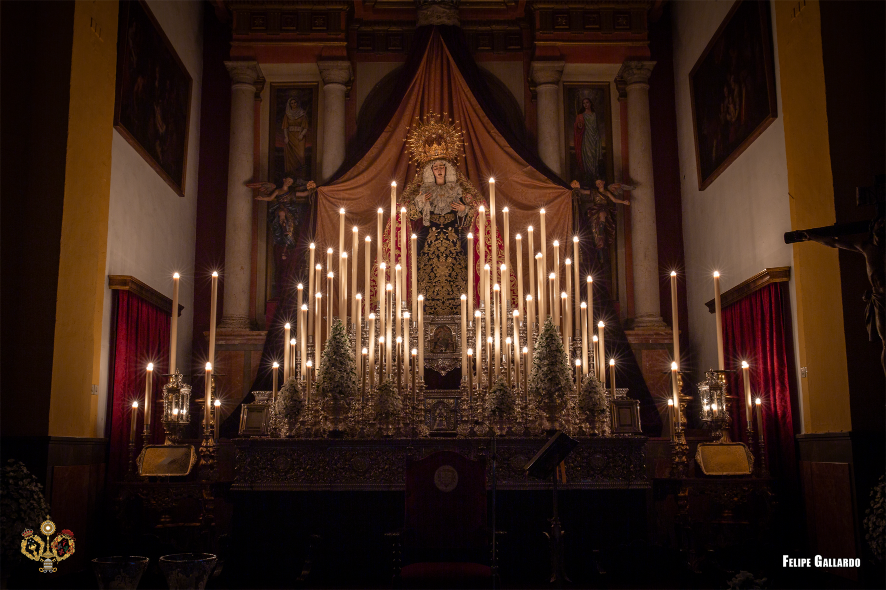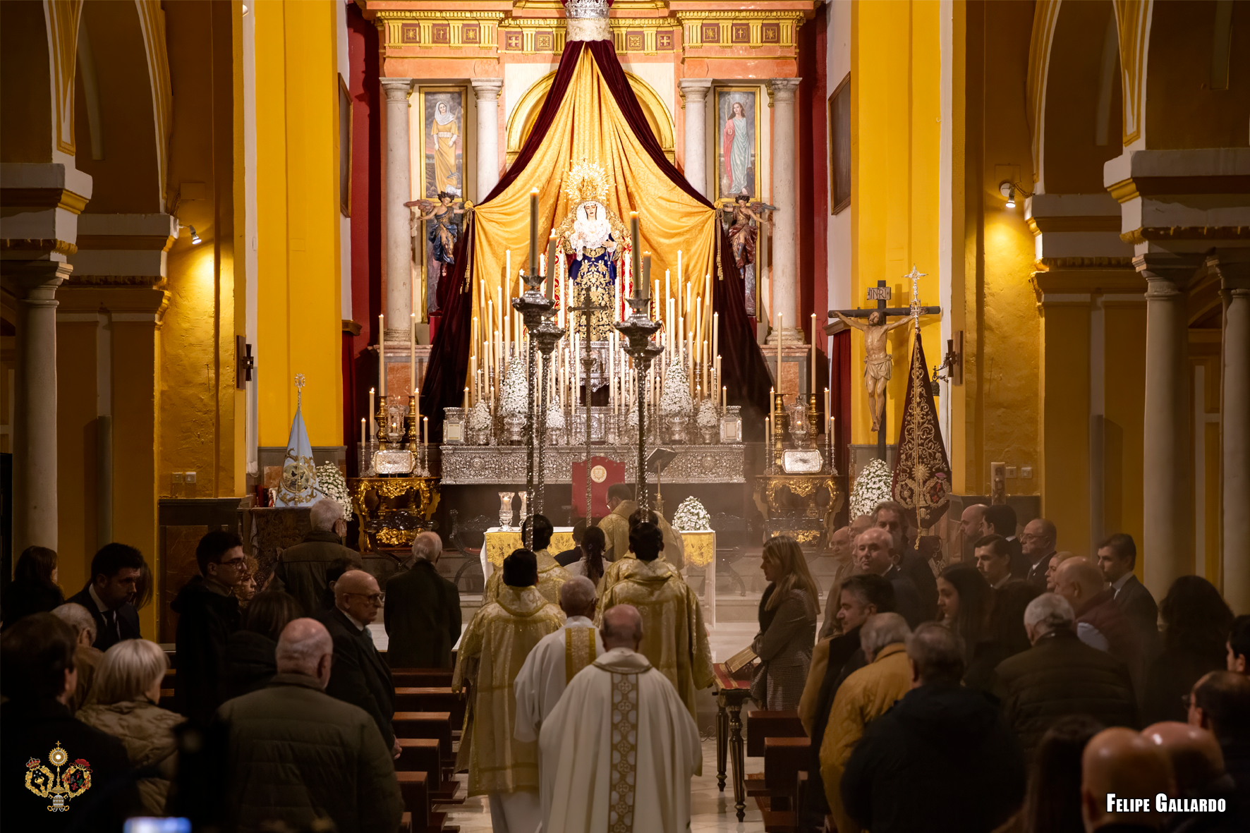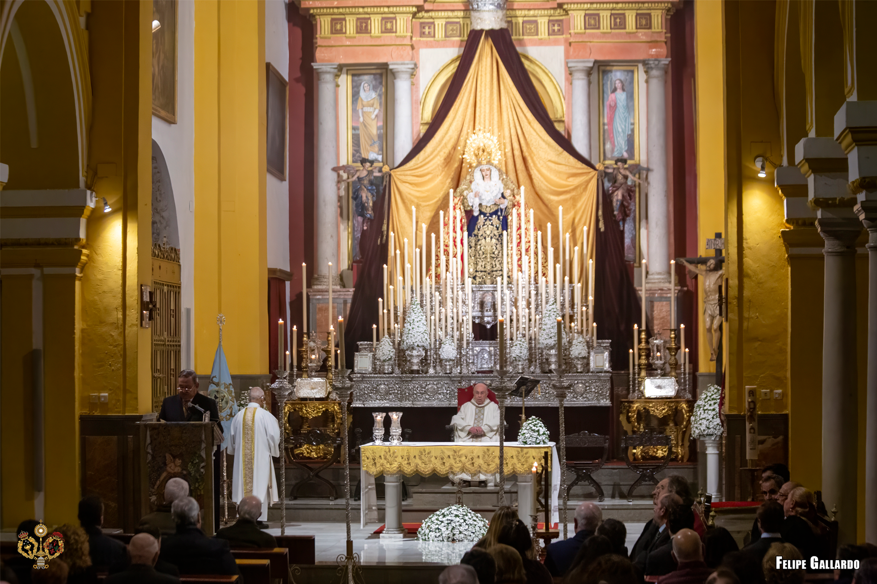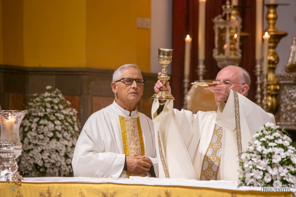 La hermandad celebró con especial devoción el triduo en honor a la Santísima Virgen los días 20, 21 y 22, predicado por el Rvdo. Sr. D. Alfonso Peña Blanco, párroco de San Francisco Javier y San Ignacio de Loyola de Sevilla, culminando con la función solemne el día 23, presidida por nuestro Director Espiritual. Para estas jornadas, la imagen de la Virgen se presentó ataviada con el manto de camarín confeccionado en 2024 en el taller de bordados Virgen del Carmen, obra del bordador José Muñoz Moreno, de San Fernando (Cádiz). Lució igualmente su saya de salida, diseñada por Antonio Joaquín Dubé de Luque y realizada en 1990 en los talleres Artesanía Fernández y Enríquez, así como la corona labrada por Manuel Villarreal Fernández en 1957. Se adjunta una galería fotográfica realizada por NHD Felipe Gallardo y NHDª Paula Grande, que recoge algunos de los momentos más destacados de estos cultos.